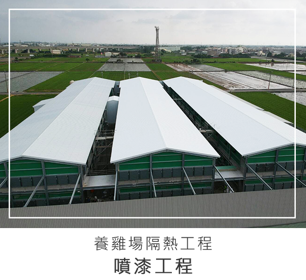 服務項目 SERVICE 噴漆工程 PAINTING 噴漆工程包含鐵皮隔熱及鐵皮屋防鏽整新。氣候暖化的現象日趨嚴重,本公司採用新型亞克力樹脂施作於鐵皮屋的隔熱,不僅能有效降低室內溫度節省耗電成本,還能兼具鐵皮防鏽功能延長鐵皮壽命 噴漆工程 PAINTING CASE 更多噴漆工程案例 噴漆工程 免費諮詢估價 PAINTING CONTACT 對於噴漆工程有相關疑問,都可以與我們聯繫。先初步進行線上的估價作業,或以電話聯繫我們進行初步估價。若有需要則可以到府進行勘察並估價。 免費諮詢估價